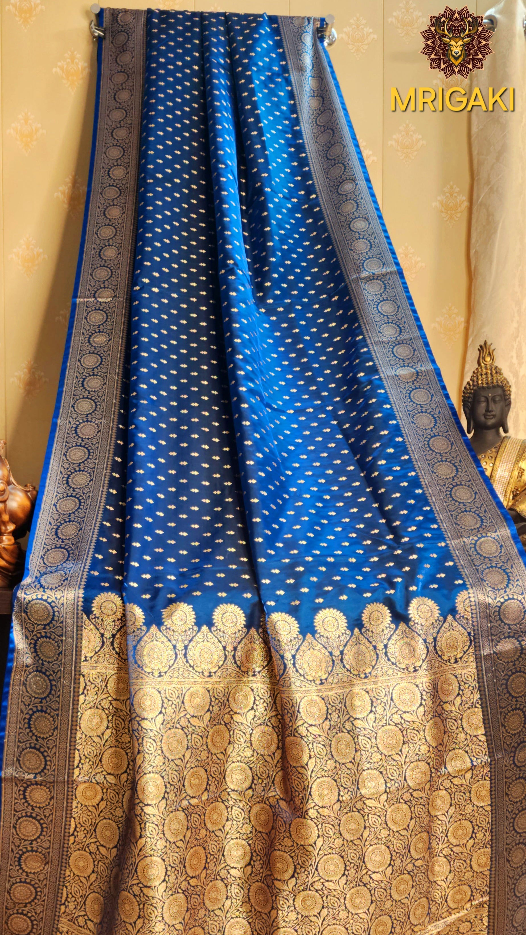 Royal Blue color Satin Silk Banarasi Saree with Thousand butti & Zari border & Pallu